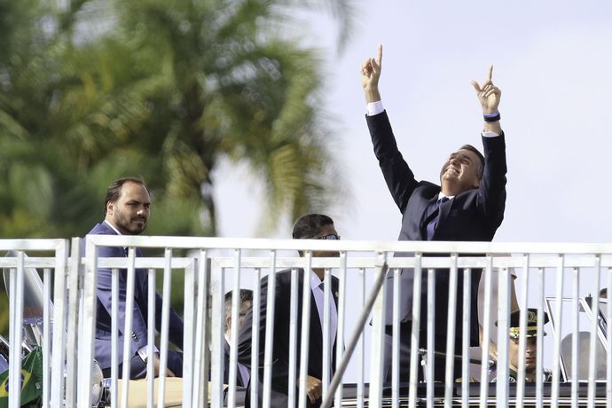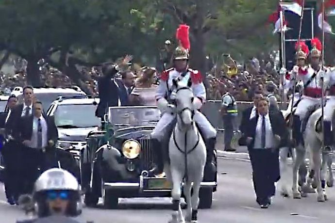 Después de recibir la banda presidencial de Michel Temer, el presidente Jair Bolsonaro habló en el Parlatorio del Palacio del Planalto, frente al público que llenaba la Plaza de los Tres Poderes. Recibido a los gritos de “mito” y “el capitán llegó”, Bolsonaro visiblemente emocionado, propuso la creación de un “movimiento para restablecer patrones éticos y morales que transformarán nuestro país”. “La corrupción, los privilegios, las ventajas, los favores politizados, partidarizados terminen y queden “en el pasado para que el gobierno y la economía sirvan de verdad para la nación”.