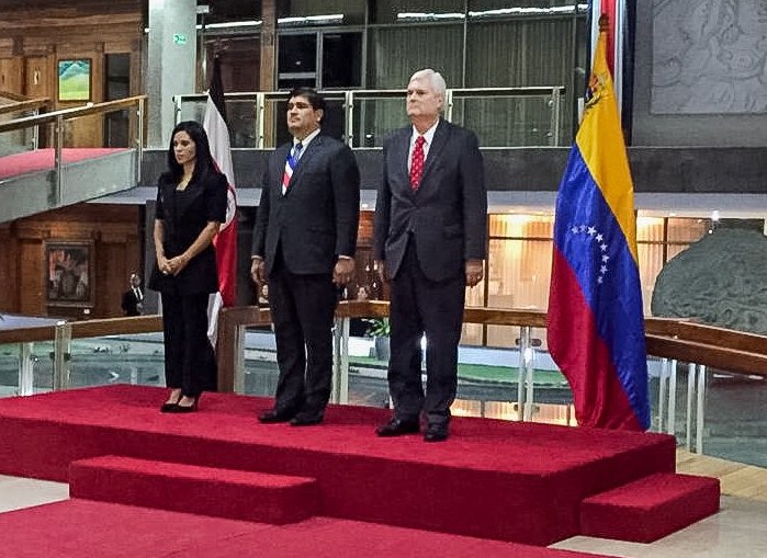El presidente costarricense dijo que “Ayer recibimos a la embajadora ( María Faría). Ella es la persona reconocida por Costa Rica, ningún otro tiene el reconocimiento oficial”.