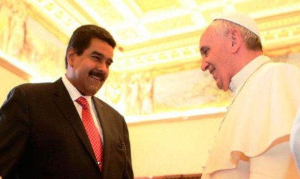 En una entrevista con el canal italiano SKY TG24, el tirano chavista revela “He enviado una carta al Papa Francisco, espero que esté en camino o que haya llegado a Roma, al Vaticano. Al decir que estoy al servicio de la causa de Cristo. Soy un cristiano, un cristiano profundo, de Cristo. El Papa sabe que soy practicante de la fe. Yo oro, un cristiano de oración y acción. Y con este espíritu pedí ayuda … en un proceso de facilitación y fortalecimiento del diálogo, como una dirección. México …. Los gobiernos de México y Uruguay, todos los gobiernos caribeños del Caricom y el gobierno de Bolivia convocaron a una conferencia para el diálogo y la paz en Venezuela el 7 de febrero. Le pido al Papa que haga su mejor esfuerzo, su voluntad de ayudarnos en el camino del diálogo. Esperamos recibir una respuesta positiva”, dijo el dictador.