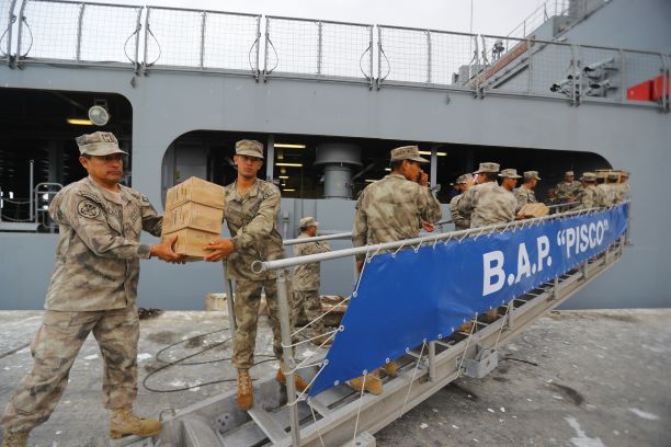 De la misma forma el buque multipropósito llegó al puerto de Ilo, en el sur del país con 10 vehículos anfibios, maquinaria pesada para la remoción de escombros, cisternas con agua potable y personal médico para atender a los afectados.