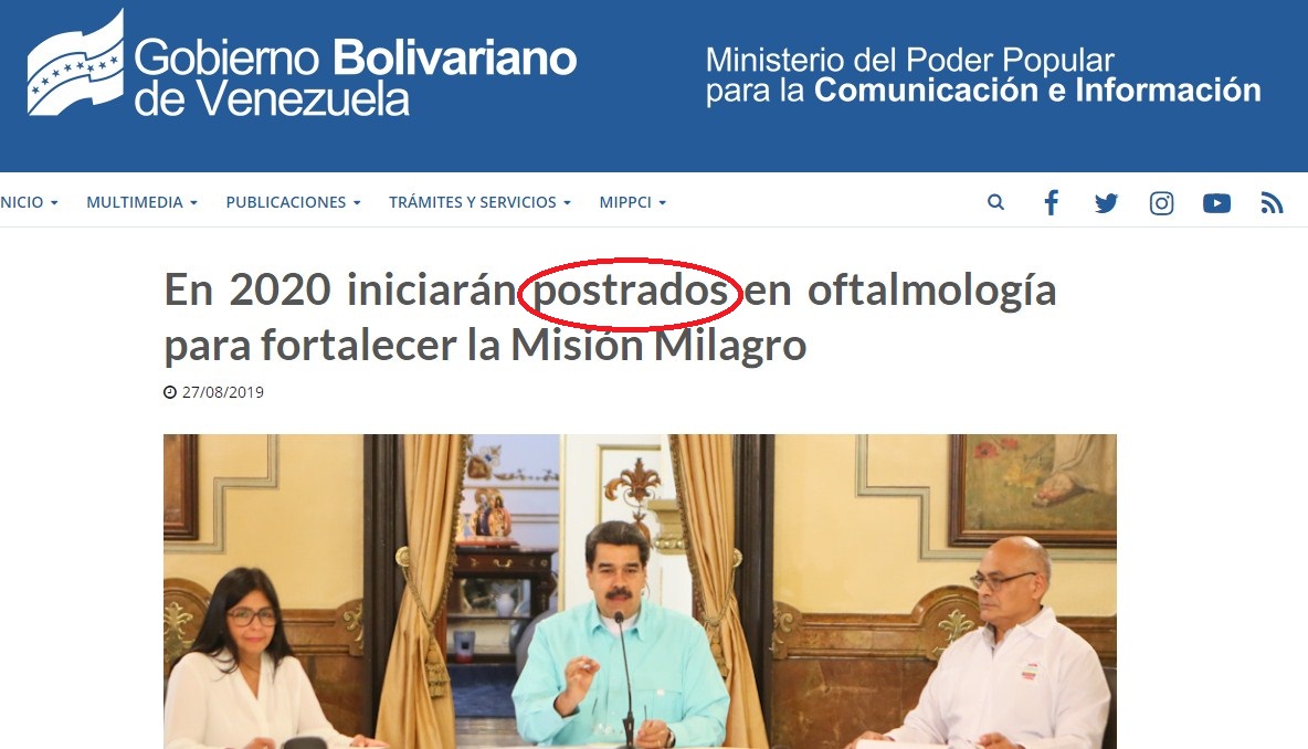 Para la web del Ministerio del Poder Popular para la Comunicación y la Información (Minci), los posgrados son “postrados” y se entiende porque ese es el deseo del régimen; tener a todos postrados ante el sátrapa.