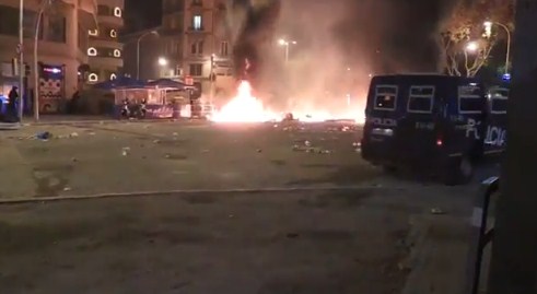 “Barricadas arden en llamas a lo largo de la Vía Laietana [en el centro de Barcelona] impidiendo el paso a los vehículos policiales. Hay también diversos fuegos de grandes dimensiones en las calles aledañas”, señalan los Mossos en un mensaje publicado en Twitter.