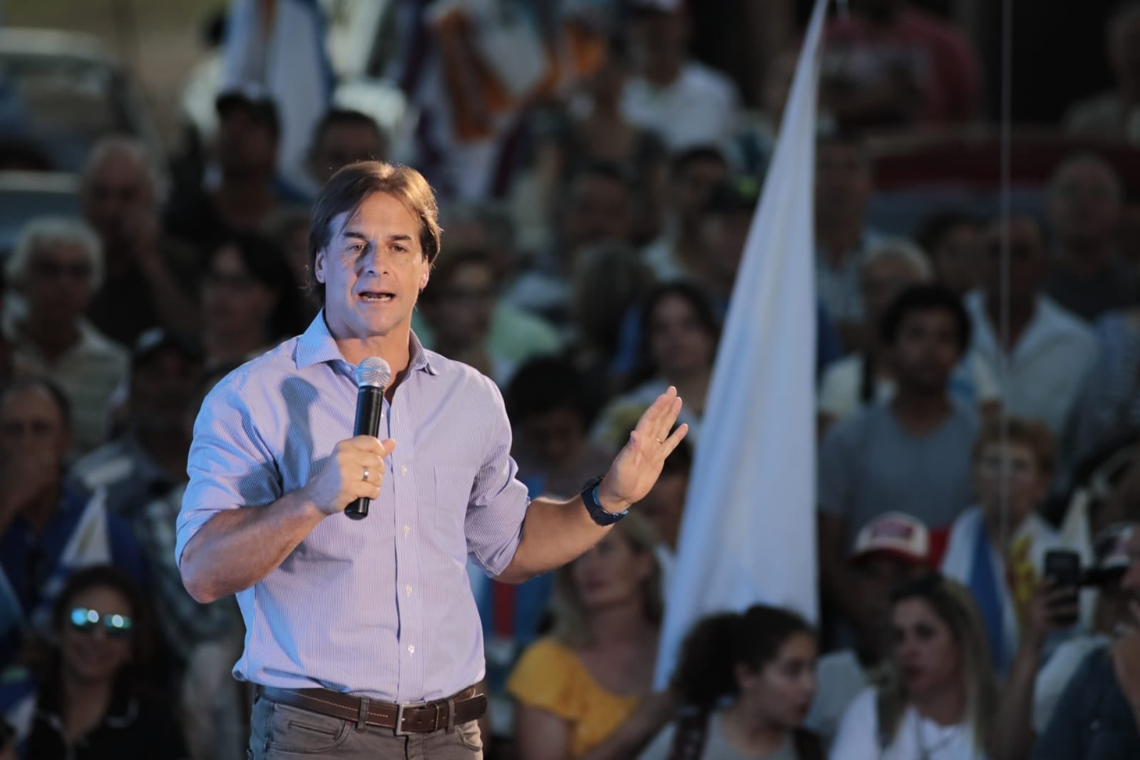 “Si llegamos desuniendo no vamos a poder gobernar para todos”, dijo Lacalle Pou. Pidió tolerancia y respeto a su militancia en la búsqueda de los votos indecisos.