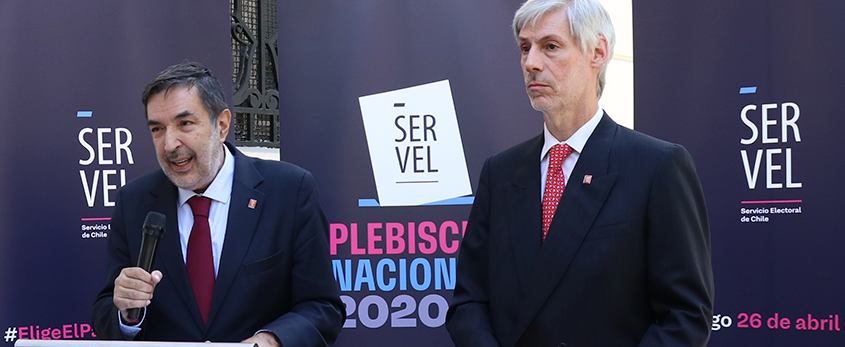 El Presidente del Consejo Directivo del Servicio Electoral de Chile (Servel), Patricio Santamaría Mutis, y el Director Nacional de dicho organismo, Raúl García Aspillaga presentaron de forma oficial el Plebiscito Nacional 2020, instancia que tiene previsto realizarse el próximo 26 de abril en todo el país y donde los ciudadanos podrán manifestar si están de acuerdo con realizar una nueva Constitución.