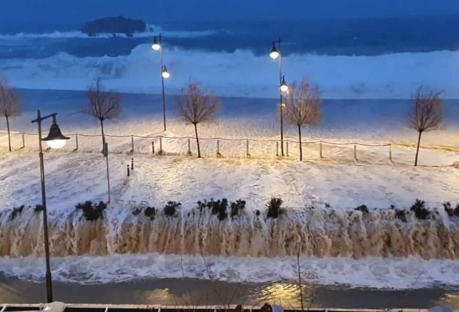 Hasta el paseo marítimo de la localidad ha llegado un espeso manto blanco consecuencia de la borrasca ‘Gloria’.