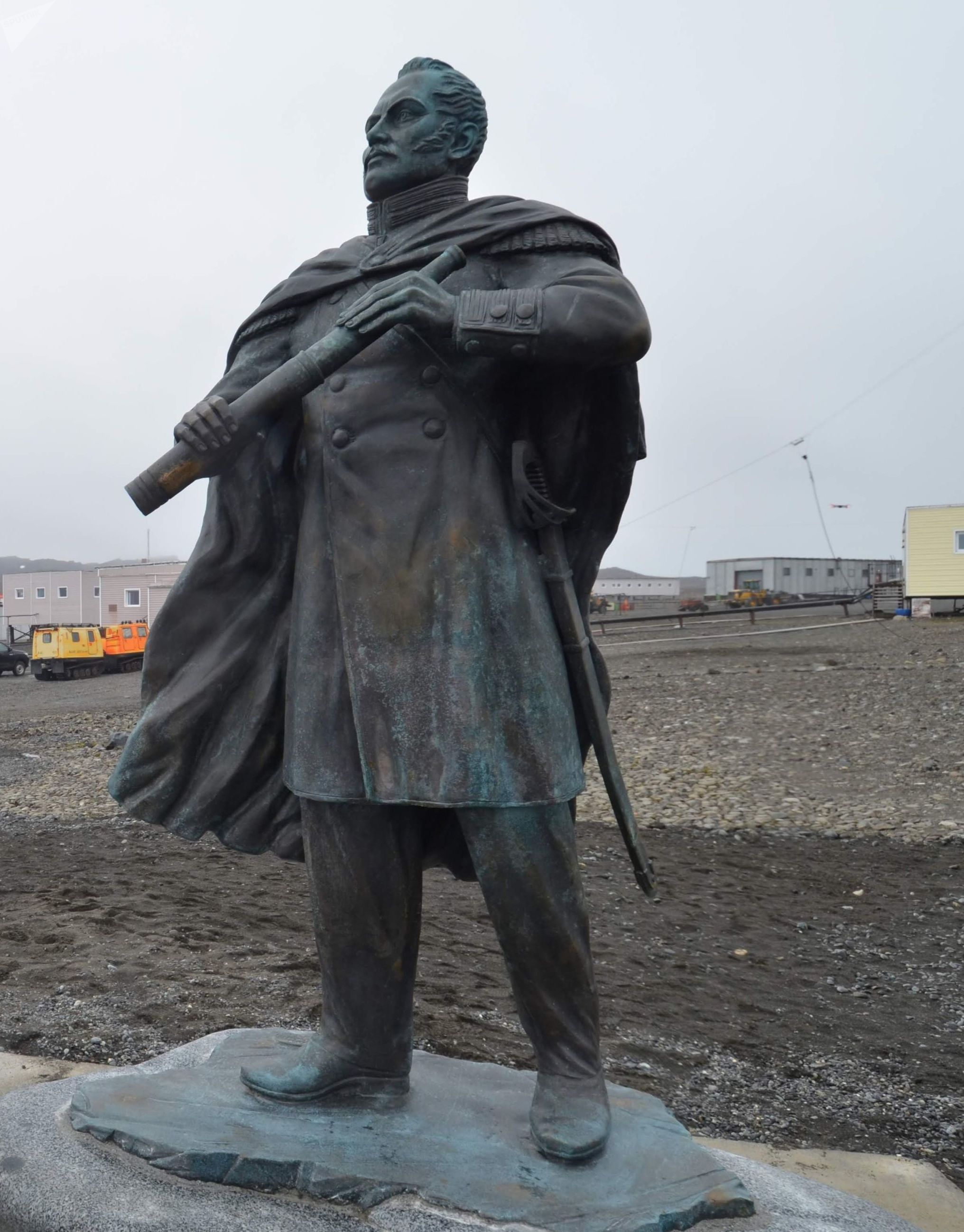 Monumento al navegante ruso, el descubridor de la Antártida, Fabian Gottlieb Bellingshausen (Foto cortesía Sputnik)