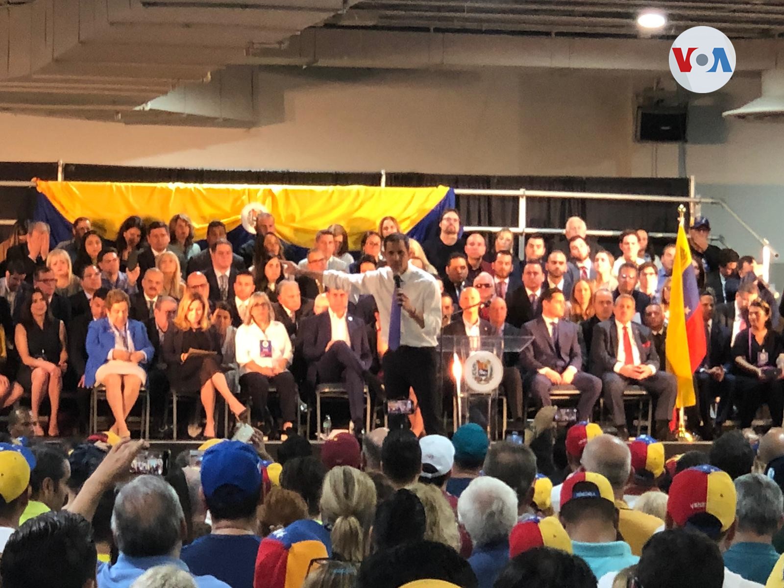 Asistentes al acto pidieron “una intervención” en Venezuela. Guaidó explicó que se harán todas “las acciones que sean necesarias” pero “responsablemente y con el respaldo de nuestros aliados”.