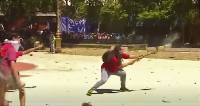 El terrorista, en una manifestación en 2017, disparó con un mortero atado a un palo contra la Policía frente el Congreso de la Nación, en medio de las protestas contra la reforma provisional que presentaba el expresidente argentino Mauricio Macri.