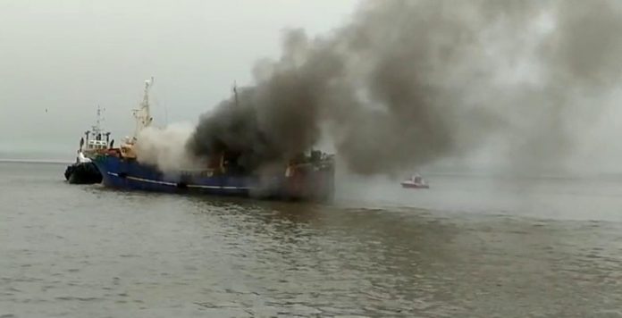 Este martes a la hora 12:00 aproximadamente se inició un incendio en el buque de bandera coreana, Sur Este 709.