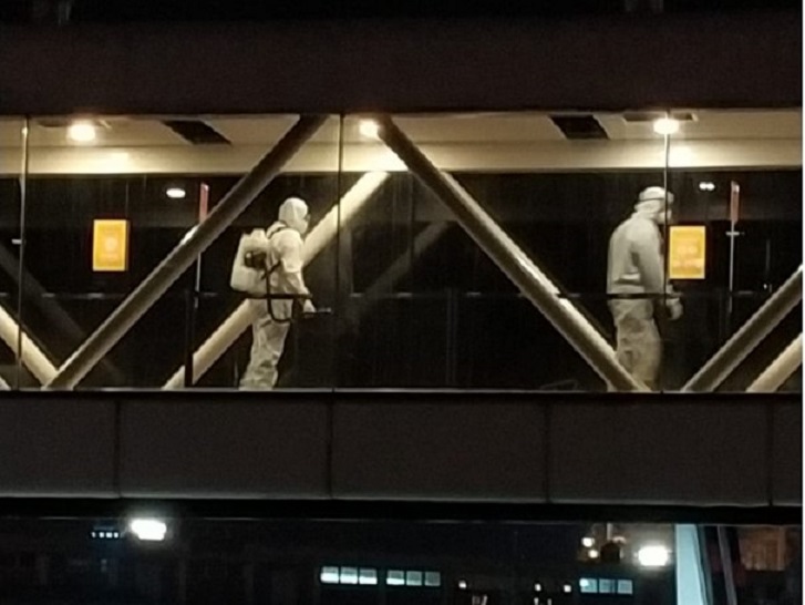 El túnel por donde descenderán los viajeros luego del hisopado fueron fumigados para su descontaminación por orden de las autoridades.