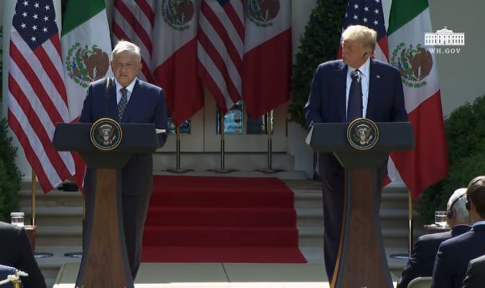 Trump destacó que “la gente” estaba apostando en contra de que ambos países pudieran mantener una buena relación desde la llegada de López Obrador a la presidencia, en diciembre de 2018. “Estamos realizando un gran trabajo juntos. Somos amigos entrañables, socios y vecinos. Nuestra cooperación se cimienta en la confianza y el respeto mutuos entre nosotros dos”, afirmó.