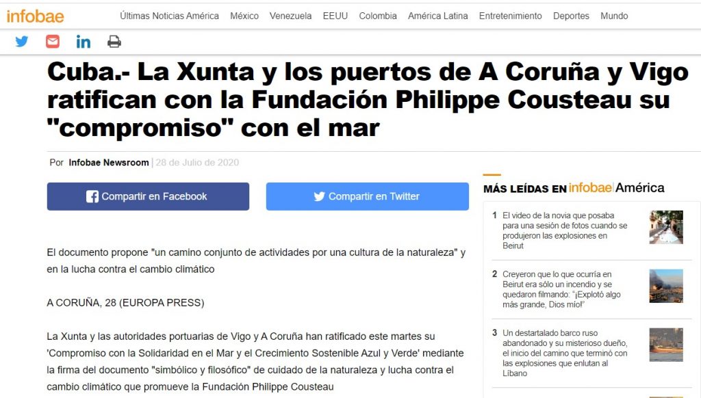 En un acto que ha tenido lugar en el espacio Sóou de A Coruña, el secretario general de la Fundación Philippe Cousteau, Rafael Lobeto, ha puesto en valor el significado de este documento “simbólico y filosófico” al que se adhieren la Xunta de Galicia, las autoridades portuarias y la sociedad civil gallega para concienciar de la necesidad de cuidar nuestro entorno natural y de proteger los océanos y, con ello, la vida.