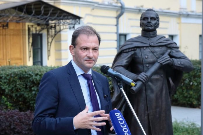 La ceremonia de inauguración del monumento se celebró en pleno centro de la capital rusa, en el callejón Petrovski, en el patio de la sede de la Sociedad Histórico-Militar Rusa.