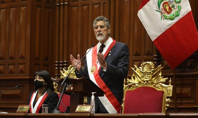 El centrista Francisco Sagasti Hochhausler juró este martes como nuevo presidente de la Perú para completar el periodo constitucional 2016-2020 con la misión de encabezar la transición política en la nación incaica luego de la destitución del ex Mandatario, Martín Vizcarra y la renuncia de su sucesor, Manuel Merino a solo seis días de asumir el cargo.