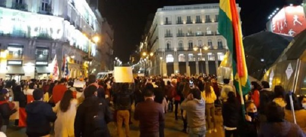 Por otra parte un centenar de residentes peruanos en España se reunieron este jueves en la madrileña Puerta del Sol de la capital española, donde cerca de las 20:30 hrs, elevaron sus consignas de protestas con pancartas y afiches expresando mensajes en contra del actual Mandatario peruano.