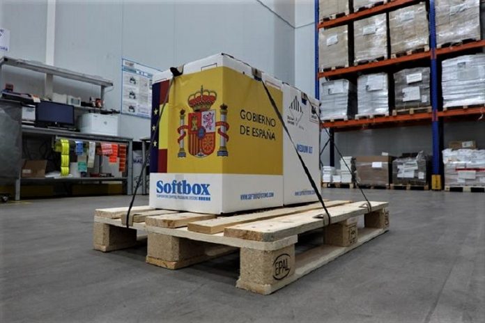 A las 07:29h. de este sábado, el camión que las transportaba desde Bélgica ha llegado al almacén de Guadalajara en España. El gobierno ha tapizado el cargamento de vacunas contra el Covid-19 con el cartel con su logo oficial convirtiendo el embarque en un acto de propaganda destacan desde la oposición.