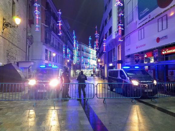 Las autoridades, al igual que el día 30 de diciembre y a modo de prevención, desplegaron un operativo policial a las 22:00 hrs en torno a todos los accesos de la plaza a fin de evitar la expansión del coronavirus en la región en una noche atípica por la prohibición de celebrar las campanadas en la calle y eludir eventuales aglomeraciones de personas.