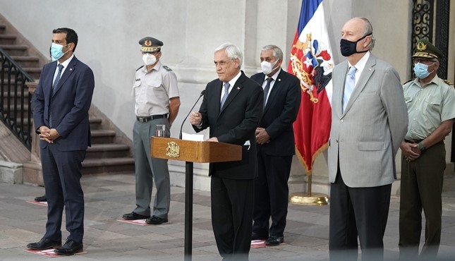 Las declaraciones las realizó el Jefe de Estado tras una reunión de urgencia en el Palacio de La Moneda con el ministro del Interior, Rodrigo Delgado; ministro de Defensa Nacional, Baldo Prokurica; el Comandante en Jefe del Ejército, General Ricardo Martínez; el General Director de Carabineros, Ricardo Yáñez, y el Director General de la PDI, Héctor Espinosa.