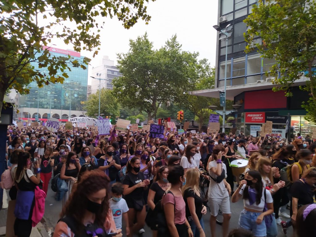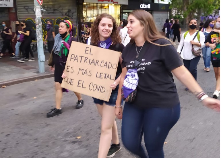 A pesar de las recomendaciones de las autoridades de la salud de Uruguay, para que no se generaran aglomeraciones en un momento donde la pandemia de coronavirus arrecia, una marcha masiva de colectivos feministas, desoyendo los consejos, marchó por la avenida 18 de Julio en Montevideo, donde muchas mujeres iban con tapabocas, pero otras manifestaron sin el uso de las mascarillas, pero en todos los casos no se cumplió con el distanciamiento social recomendado.