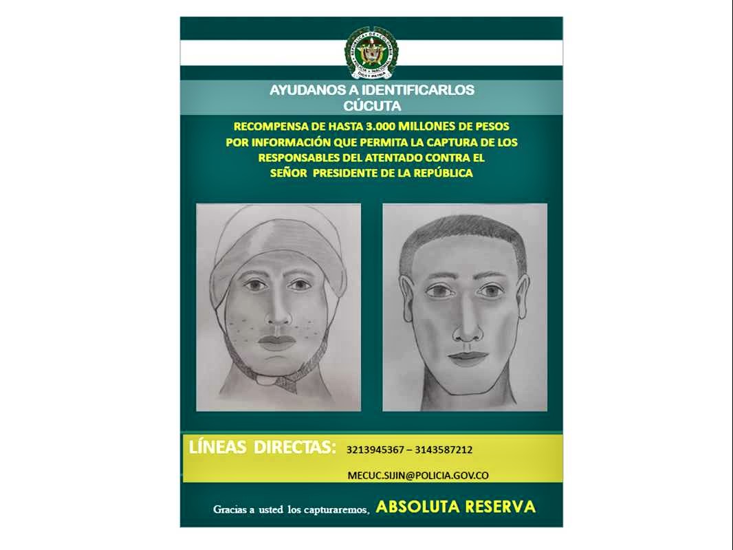 Asimismo, Molano reveló que se elaboraron dos retratos hablados de los presuntos autores materiales del atentado gracias al trabajo conjunto entre la Dirección de Investigación Criminal e Interpol (Dijin), la Dirección de Inteligencia de la Policía Nacional, la Dirección Antisecuestro de la Institución y la Fiscalía General de la Nación.