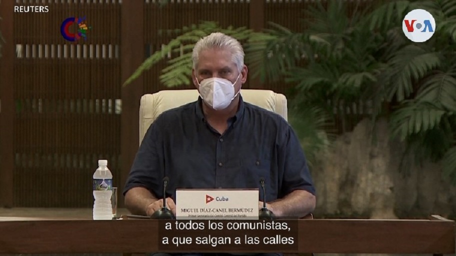 Díaz-Canel convoca a todos los comunistas que salgan a reprimir las protestas - Imagen video VOA
