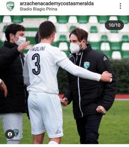 – Llegué a Roma en enero de 2020, prácticamente el día que apareció la pandemia de COVID en Milán, yo iba con destino a un equipo Primavera de Serie A de esa zona, pero al llegar surgió la posibilidad de un equipo de Primera División de Serie C o D y no dudamos. Fue al comienzo en Arzachena Costa Esmeralda, considerado la Filial del Spezia, ahí pase el periodo de adaptación y la parte de pandemia más complicada, de todas maneras no paré nunca de entrenar y jugar, estuve siempre convocado por el técnico.
