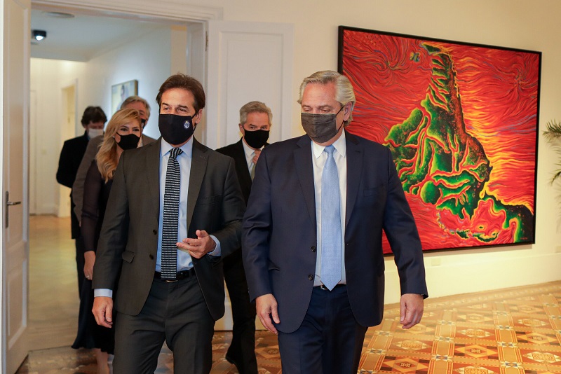 El presidente argentino Alberto Fernández recibió este viernes de noche en la Residencia de Olivos a su par de la República Oriental del Uruguay, Luis Lacalle Pou, con el objetivo de analizar distintos aspectos de la relación bilateral y regional.
