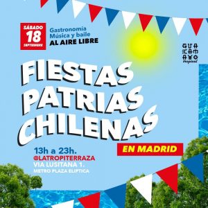 La comunidad chilena en Madrid celebrará por todo lo alto las próximas Fiestas Patrias este 18 de septiembre cuando se conmemore un año más de la creación de la primera Junta Nacional de Gobierno en 1810, lo que dio paso a la Independencia de Chile. Para esto se ha organizado un evento en la capital española donde se prevé recordar y festejar el conjunto de valores y tradiciones compartidas de esta nación sudamericana.