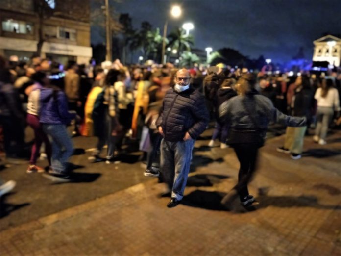 Entre quienes no cumplieron las normativas en contra del coronavirus, estuvo, entre otros, el senador izquierdista del Frente Amplio Daniel Olesker, que como se observa en las fotografías, llevó el tapabocas como adorno. El legislador escribió en Twitter: “Un año más acompañado esta enorme expresión popular y respaldando esta lucha”.