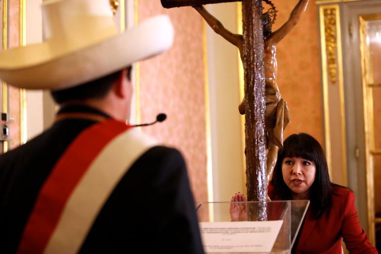“Por Dios, por este país de mujeres y hombres que todos los días luchan por vivir por dignidad, sin discriminación y que promueven los reales cambios. sí juro”, dijo Vásquez, durante el acto protocolar ante el presidente Pedro Castillo.