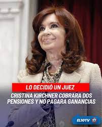 La vicepresidente doña Cristina, se ríe de las necesidades de los argentinos y hace ostentación de la doble pensión vitalicia de la cual es beneficiaria, que representa unos 2,5 millones de pesos mensuales, cifra a la cual debe sumarse una pelea por un retroactivo que asciende a unos $120 millones y además no pagará ganancias. Una Justicia obsecuente con la vicemandataria.