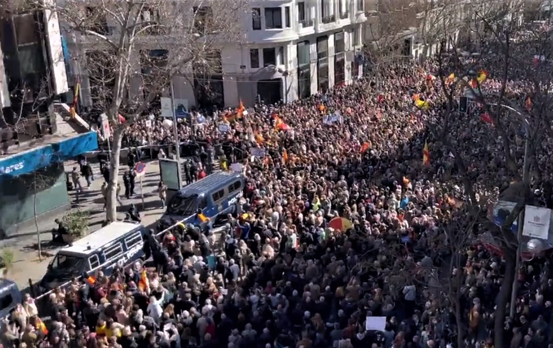 Multitudinaria concentración de militantes del PP este domingo frente a la sede nacional del Partido Popular de España, en apoyo a la presidenta de la Comunidad de Madrid, en conflicto con Pablo Casado, que por sus celos ante el éxito político y social de Isabel Díaz Ayuso, ha generado un cisma dentro del partido con inciertas derivaciones.
