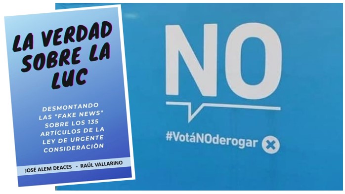 El libro “La verdad sobre la LUC”, escrito por José Alem Deaces y Raúl Vallarino, desmonta las falsedades sobre los 135 artículos de la Ley de Urgente Consideración (LUC) y se puede bajar gratis desde la web https://noderogamos.com.uy/