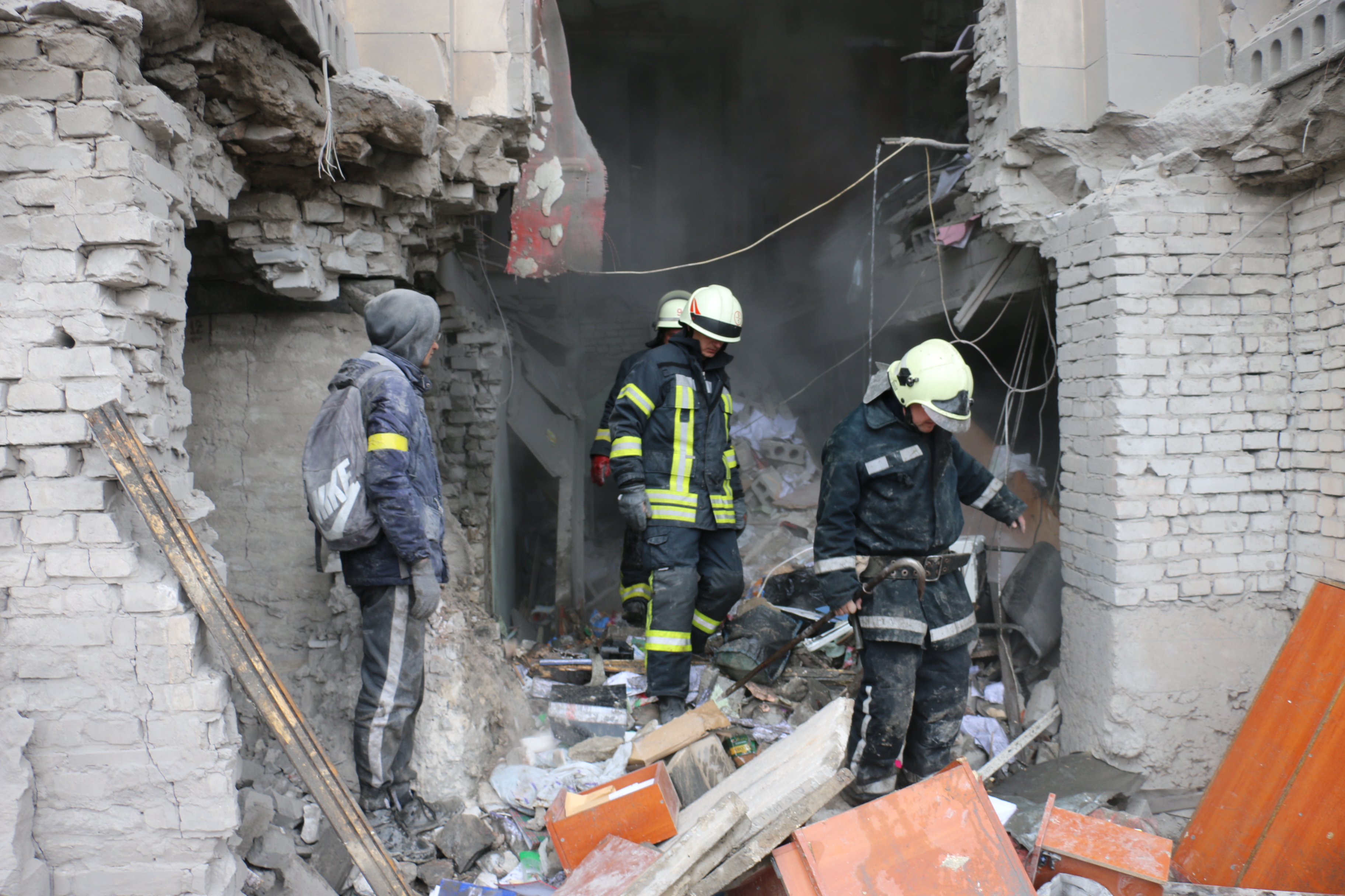 A las 16:00 horas, un ataque aéreo entre las entradas 2 y 3 de un edificio civil residencial de cinco plantas (6 entradas en total) mató a 8 civiles en Járkov e hirió a otras 6 personas.