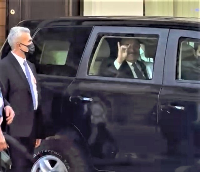 Canciller de Turquía hace el gesto que identifica a la organización terrorista turca "Lobos grises" - Imagen video colectividad armenia