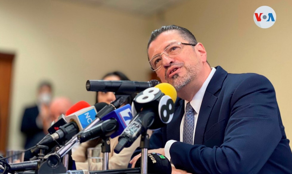 El presidente electo de Costa Rica, Rodrigo Chaves en una conferencia, el 22 de abril de 2022 [Foto: VOA / Armando Gómez]