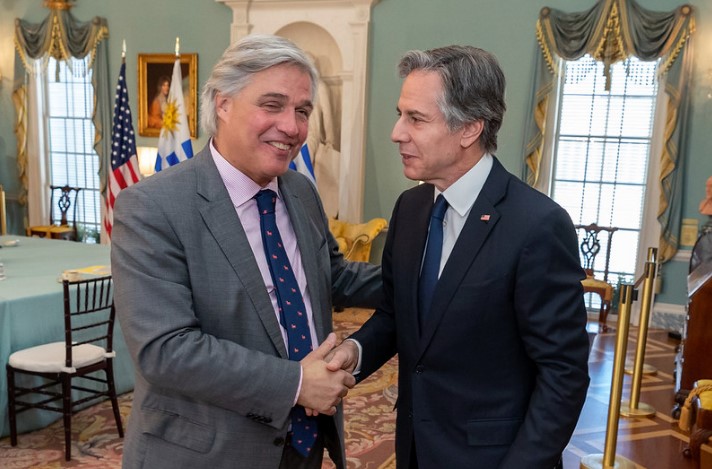 El canciller de Uruguay, Francisco Bustillo, mantuvo un encuentro este martes con el secretario de Estado de Estados Unidos, Antony Blinken, quien manifestó que “Uruguay es un socio democrático fuerte de los Estados Unidos con una voz fuerte en la ONU y la OEA, es una voz que realmente valoramos”, dijo el jerarca estadounidense.