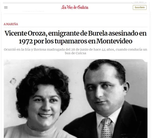 Vicente Oroza, chofer de la empresa de transporte público Cutcsa, asesinado por un tupamaro – plenamente identificado – en el Cerro de Montevideo, por negarse a atropellar con el ómnibus a un grupo de las fuerzas conjuntas que realizaba un control callejero, también en años de democracia. En el hecho los tupamaros hirieron a un soldado que subió al vehículo y Oroza intentó protegerlo y para ello les abrió la puerta trasera del autobus a los terroristas para que pudieran escapar, pero el tupamaro, que además era su vecino del barrio, asesinó a Oroza con varios balazos. (28 de junio de 1972). Hoy su asesino cobra una pensión del Estado como ex preso político. Una remuneración extensible a sus descendientes y la familia de la víctima no recibe ni un reconocimiento.