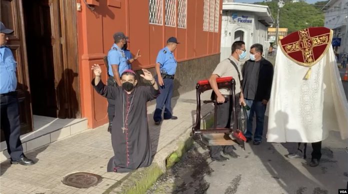 El obispo de la Diócesis de Matagalpa, Nicaragua, monseñor Rolando Álvarez, salió a las calles con el Santísimo en sus manos frente a un grupo de agentes policiales que impusieron un cerco en la Curia Arzobispal de Matagalpa.