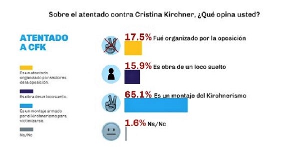 Una encuesta realizada en Argentina por la empresa Giacobbe y Asociados, arroja datos sobre la situación política que se vive en el país luego del ataque a la vicepresidente Cristina Kirchner.
