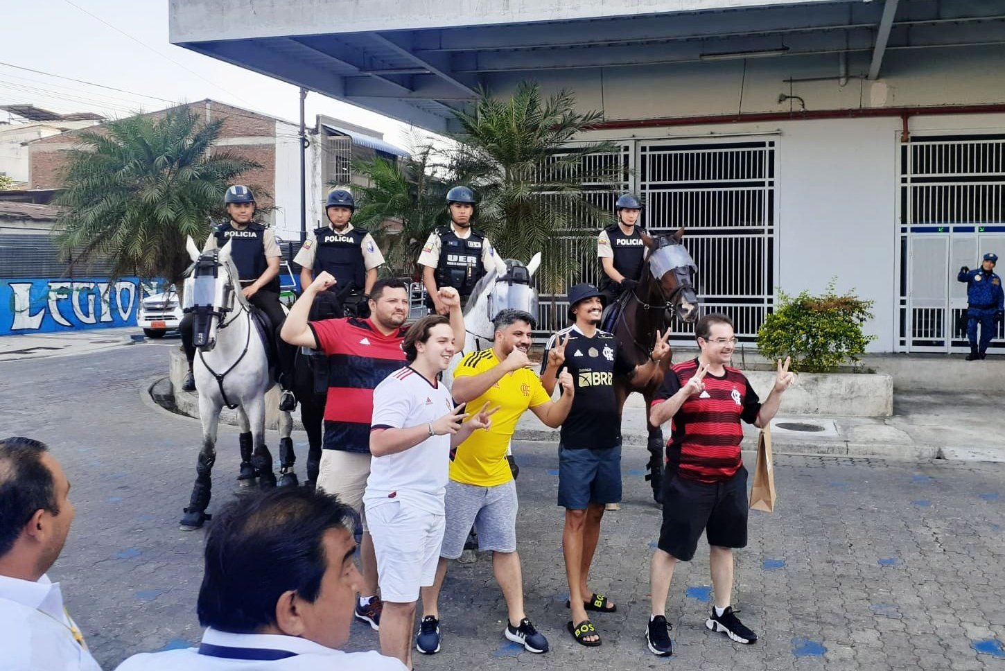 La Policía Nacional del Ecuador ha dispuesto un gran despliegue policial para resguardar la seguridad de los deportistas y de los miles de hinchas brasileños que han arribado a la ciudad.