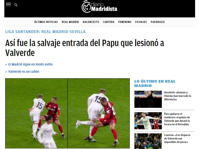 En la incidencia, Papu Gómez se desentiende totalmente del balón y busca hacer daño al jugador madridista. Varios ex árbitros profesionales recogieron que no habia discusión en la acción y que el argentino debió ser expulsado del encuentro.