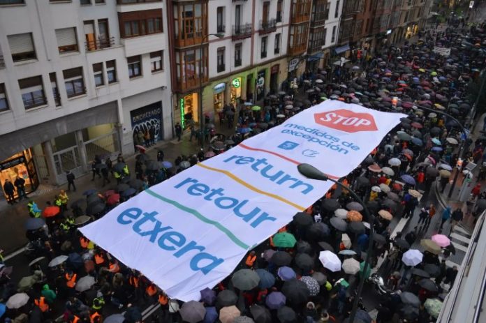 Grupos de colectivos proetarras han salido este sábado en manifestación para exigir la libertad de miembros de ETA, la banda criminal que asesinó cerca de 900 personas en España, incluidos niños; crímenes por los cuales no se ha arrepentido.