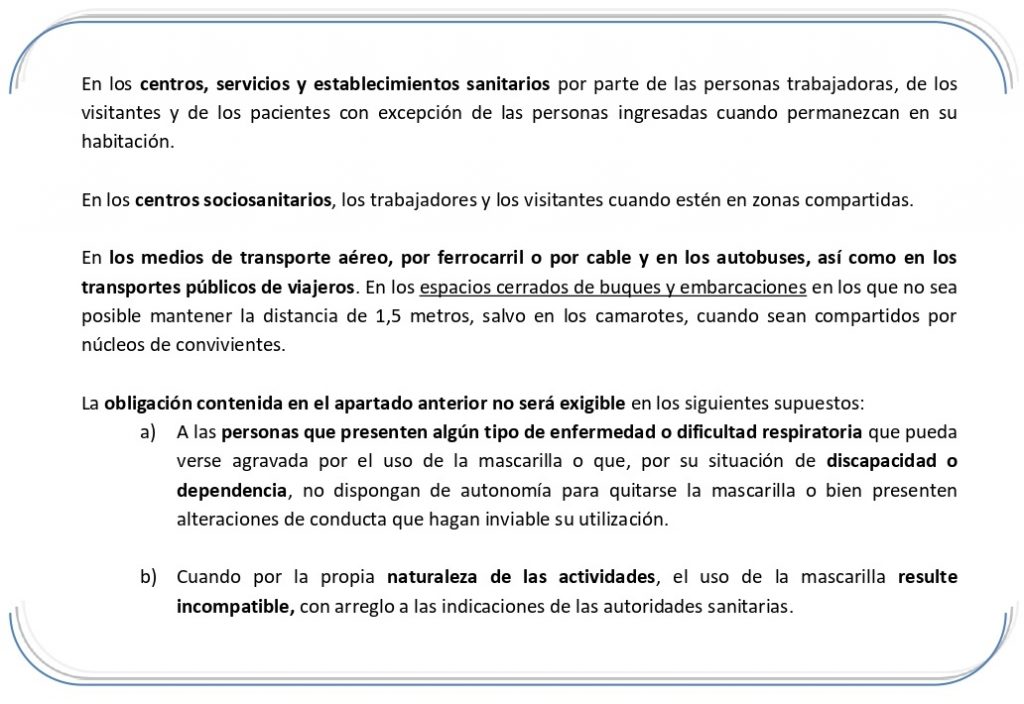 Por lo tanto el uso de la mascarilla seguirá siendo obligatorio en centros sanitarios, residencias y farmacias.