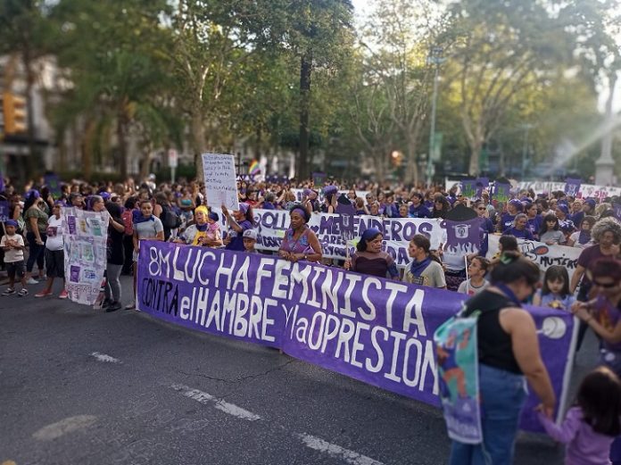 Otra marcha feminista por la principal avenida de la capital uruguaya concentró a una enorme cantidad de personas en las últimas horas del Día Internacional de la Mujer.