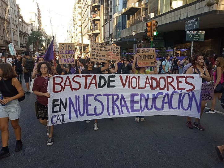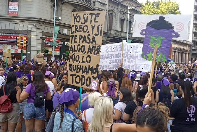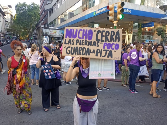 Todo iba mezclado, desde la protesta social a las consignas en “lenguaje inclusivo” y hasta la bandera de los Treinta y Tres Orientales sufrió un cambio: ya no era “Libertad o Muerte”; se convirtió en “Feminismo o Muerte”. En esta ocasión no hubo disturbios y según informó El País, la Iglesia del Cordón, por pasados incidentes con bombas de pintura, el templo -vallado y con guardia policial- no fue objeto de ataques.
