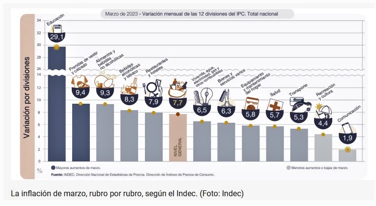 El gobierno de Alberto Fernández y Cristina Kirchner, ha recibido este viernes un golpe demoledor al revelarse oficialmente que la inflación de marzo fue del 7,7% la más alta de esta administración. En los últimos 12 meses el indicador aumentó 104,3% y el acumulado del primer trimestre es de 21,7%.