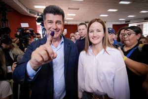 El candidato a la presidencia de la República por la Asociación Nacional Republicana (ANR- Partido Colorado) Santiago Peña votó en el Saint Anne’s School de la capital. Instó a ejercer el derecho a elegir para fortalecer la democracia.