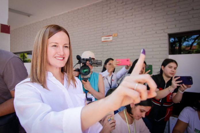 La candidata opositora Soledad Núñez, de la Concertación (izquierda), habría violado la veda electoral en medio de los comicios de este domingo, cuando luego de votar declaró a los periodistas, “Nos robaron muchas cosas, no dejemos que nos roben la esperanza, con optimismo hay que salir a elegir el cambio y construir a partir de mañana un nuevo Paraguay”.
