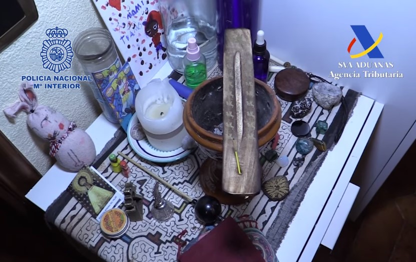 El comunicado de la Policía española, señala que agentes de la Policía Nacional y funcionarios de Vigilancia Aduanera de la Agencia Tributaria, en una operación conjunta, han detenido en el municipio de Sant Pol de Mar (Barcelona) a dos personas por su presunta participación en los delitos de pertenencia a grupo criminal, contrabando, tráfico de drogas e intrusismo profesional, así como por infringir la Ley de Extranjería. Los investigadores irrumpieron en la vivienda cuando se iniciaba un ritual antes 23 personas donde se suministraban sustancias psicoactivas prohibidas y peligrosas para la salud.